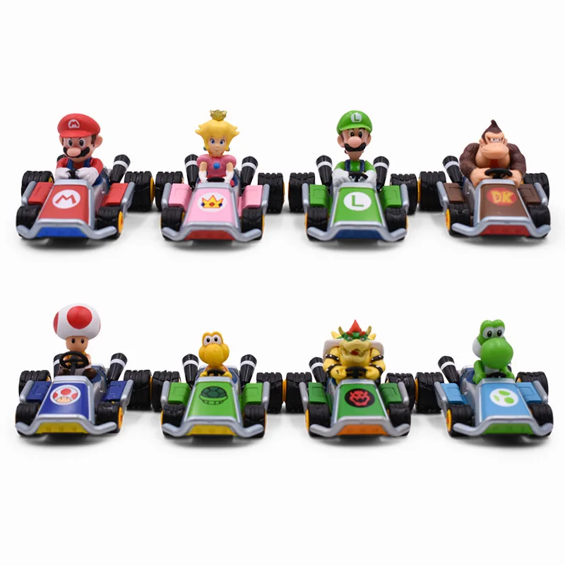 8 Style Super Mario Luigi Yoshi Koopa Peach Mario Kart Pull Back Car PVC Action Figure Toys Model Dolls Toy For Kids Gift